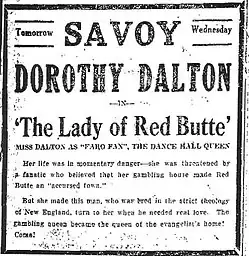 - ^ a b "Dorothy Dalton in The Lady of Red Butte Begins Today". Winnipeg Free Press. October 23, 1919.
