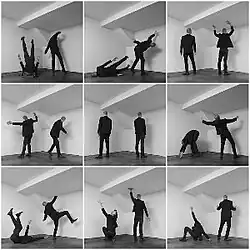 The cover art of The Lamb as Effigy depicts nine pictures of two indiscernible men facing adjacent walls of a room with differing poses with backs turned to the camera, arranged in a grid formation. The cover was inspired by works by Eadweard Muybridge, specifically The Horse in Motion and his famously nude imagery, as well as a picture in a magazine of two people admiring a work by New Zealand artist Giovanni Intra, with Kent taking note of the perspective of the photograph as well as the room. Kent described the poses as depicting homosexuality or sexuality in general and the look of "being touched by some invisible hand [or force]."[3]