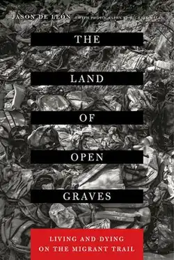 The Land of Open Graves is a book by anthropologist Jason De León with photographs by Michael Wells.[1] The book examines the human consequences of United States immigration policy. Using research methods from all four subfields of anthropology, De León sheds light on the lives (and deaths) of the thousands of migrants who cross the US border with Mexico daily in the Sonoran Desert of Arizona. The book was published in hardcover and paperback by the University of California Press in 2015 as part of the California Series in Public Anthropology.