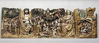 The Last Judgement or Scene of Intercession is part of a 1510-1520 carved limewood altarpiece produced at Biberach. It is attributed to the Biberach Master or his studio and is now in the Museum of Fine Arts of Lyon.