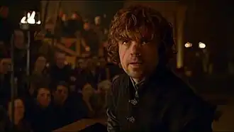 ![]() Tyrion demanding a trial by combat. Dinklage's performance for this episode was praised by critics. | |
