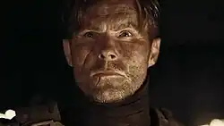 The Life opens to a military funeral of an ODST. Rows of candles arranged along the floor burn as a bagpiper plays a dirge. The assembled mourners, a mix of military personnel and civilians, attend as the casket's red ODST flag is removed, revealing the name of the deceased. A young man looks on as the cloth is ceremonially folded and passed to a woman among the mourners. A song in Welsh begins to play as the attending officer orders a gun salute in Hungarian. The camera cuts to another scene; the young man, Tarkov, is having his head shaved in the first of a montage of scenes depicting Tarkov undergoing recruit training. Again, the camera cuts ahead. Tarkov is in a one-man "drop pod", known in universe as the Single Occupant Exoatmospheric Insertion Vehicle (SOEIV), entering the atmosphere of an alien planet, onto a battlefield. He emerges under fire alongside several other soldiers, moving over corpses and through plasma fire until a Covenant Brute knocks him aside, sending his helmet flying and scarring Tarkov's face. Tarkov unholsters and fires his M6S (silenced M-6 magnum) sidearm at the Brute to no avail. However, he is saved when a falling alien aircraft crashes into the Brute, killing it. The film jumps ahead again; Tarkov is now a veteran soldier, and oversees a memorial service for one of his fallen comrades amidst burning ruins with a recruit that bears a resemblance to a younger Tarkov. Soon, sounds of gunfire draws him and his team back to the fight, closing with the lines "We are ODST" which transitions again into "Halo 3: ODST".