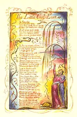 "The Little Girl Lost" is a 1794 poem published by William Blake in his collection Songs of Innocence and of Experience. According to scholar, Grevel Lindop, this poem represents Blake's pattern of the transition between "the spontaneous, imaginative Innocence of childhood" to the "complex and mature (but also more dangerous) adult state of Experience."[1]