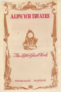 The Little Glass Clock is a 1954 historical comedy play by the British author Hugh Mills.[1] It premiered at the King's Theatre, Edinburgh before transferring to the Aldwych Theatre in London's West End where it ran for 138 performances 3 December 1954 and 2 April 1955.[2] The West End cast featured John Clements, Kay Hammond, George Curzon, Basil Sydney and George Relph.[3]