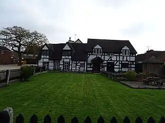 Originally built as two separate single storey semi-detached houses, it consisted of a timber-frame in-filled with brick, a brick chimney and a thatched roof. Later, expansion work added a second storey and the thatched roof was replaced with plain tiles. The building faces west towards the road and at the front on the left-hand side there are two original large timber-framed gabled roof dormers with casement windows, on the right there are two more however these are brick additions with applied timber-framing. On the north side, there is a half-hipped timber-framed gable end that leans inwards, and a raking dormer with two more small casement windows located towards the back of the building. Also on the north side is a ridge mounted brick chimney which would have originally been three diagonal brick shafts. On the east side, there is timber-framed gable above a flat roofed addition.[4]
