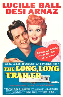 The Long, Long Trailer is a 1954 American romantic comedy road film directed by Vincente Minnelli from a screenplay by Albert Hackett and Frances Goodrich, based on the 1951 novel of the same name by Clinton Twiss. Shot in Ansco Color, the film stars Lucille Ball and Desi Arnaz as a newlywed couple who buy a new travel trailer home for their honeymoon and experience a series of mishaps as they travel from California to Colorado.[3] It also features Marjorie Main, Keenan Wynn, Bert Freed, Moroni Olsen, Gladys Hurlbut, Madge Blake, Howard McNear, and Walter Baldwin.