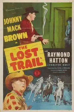 The Lost Trail is a 1945 American Western film directed by Lambert Hillyer and written by Adele Buffington. This is the seventeenth film in the "Marshal Nevada Jack McKenzie" series, and stars Johnny Mack Brown as Jack McKenzie and Raymond Hatton as his sidekick Sandy Hopkins, with Jennifer Holt, Riley Hill, Kenneth MacDonald and Eddie Parker. The film was released on October 20, 1945, by Monogram Pictures.[1][2][3]