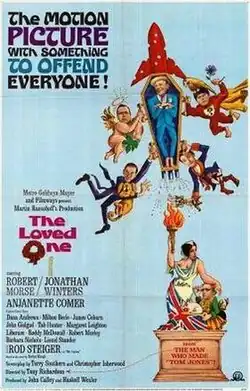 The Loved One is a 1965 black-and-white black comedy film directed by British filmmaker Tony Richardson. A satirical look at the funeral business in Los Angeles, it is based on Evelyn Waugh's 1948 short novel The Loved One: An Anglo-American Tragedy, though the screenplay by noted American satirical novelist Terry Southern and British author Christopher Isherwood also incorporates elements from Jessica Mitford's 1963 nonfiction book The American Way of Death.[3] The film stars Robert Morse, Jonathan Winters, Anjanette Comer, and Rod Steiger, with Dana Andrews, Milton Berle, James Coburn, John Gielgud, Tab Hunter, Margaret Leighton, Liberace, Roddy McDowall, Robert Morley, Barbara Nichols, and Lionel Stander credited as "cameo guest stars", and features the debut acting performance of songwriter Paul Williams.