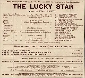The Lucky Star is a comic opera, in three acts, composed by Ivan Caryll, with dialogue by Charles H. Brookfield (revised by Helen Lenoir) and lyrics by Adrian Ross and Aubrey Hopwood. It was produced by the D'Oyly Carte Opera Company and opened at the Savoy Theatre on 7 January 1899 for a run of 143 performances.