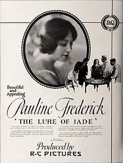 The Lure of Jade is a 1921 American silent drama film directed by Colin Campbell and starring Pauline Frederick, Thomas Holding, and Arthur Rankin.[1]