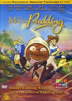 The Magic Pudding is a 2000 Australian animated musical adventure comedy film loosely adapted from the 1918 book of the same name by Norman Lindsay.[1] Directed by Karl Zwicky, the film features a voice cast of well known actors including Sam Neill, Geoffrey Rush, Hugo Weaving, Jack Thompson, Toni Collette and John Cleese.