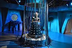 Several different designs of the Daleks from across the series' history reappear in the episode, alongside their creator, Davros, and their home planet, Skaro. The first Dalek shown in the episode is a blue-and-silver model as first seen in 1963.[11]