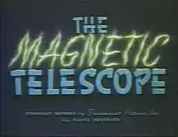 The Magnetic Telescope (1942) is the sixth of the seventeen animated Technicolor short films based upon the DC Comics character of Superman, originally created by Jerry Siegel & Joe Shuster. This animated short was created by the Fleischer Studios. The story runs for about eight minutes and covers Superman's adventures in saving the town from a comet drawn toward Earth by a magnetic telescope. It was originally released on April 24, 1942.[1]