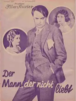 The Man Without Love (German: Der Mann, der nicht liebt) is a 1929 French-German silent drama film directed by Guido Brignone and starring Gustav Diessl, Ágnes Eszterházy, and Harry Hardt.[1] It is based on the play Kean by Alexandre Dumas.