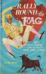 The Man from C.A.M.P. is a series of ten gay pulp fiction novels published under the pseudonym of Don Holliday. The original nine were written by Victor J. Banis between 1966 and 1968; a tenth by an uncertain author appeared in 1971.[1] The series first emerged during a period when gay paperback titles began spoofing popular genre fiction. As such, they are part of the great gay paperback explosion that "catered to most every taste in men's genre fiction," including detective stories and spy thrillers.[2] According to Banis, the series was inspired by the characters Batman and Robin, and is a spoof of the James Bond series and the television show The Man from U.N.C.L.E.[3][4]