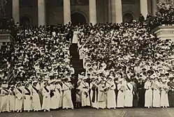 The march was also used during a large demonstration of American suffragists rallying in Washington, D.C., on May 9, 1914.[10] The Congressional Union for Woman Suffrage sent delegates to march up the Capitol building stairs and present a petition to the U.S. Congress and accompanied by a 1,000 singer chorus.[10]