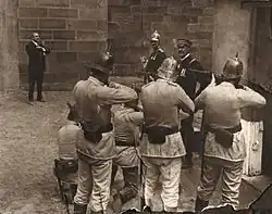 Filming took three weeks in and around Sydney, with locations at Watsons Bay[12] and interiors at Darlinghurst Gaol (standing in for German Headquarters[13]) and the Rushcutters Bay Studio, finishing in early January 1916. It was the first film made on this topic in the world.[14]