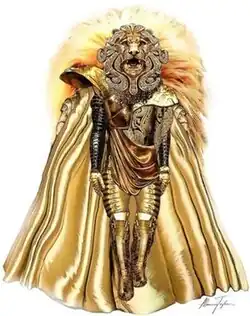 The costumes worn by the celebrity contestants were designed by Marina Toybina, a four-time Emmy Award winner.[3] Toybina described the Lion and Monster costumes as her favorites from the first season. The Lion—which took the longest to make—was inspired by The Chronicles of Narnia and Joan of Arc. It was unlike the other eleven costumes as the gemstone-laden mask was sculpted out of clay and coated in gold to give it an "armor-like aesthetic." The Monster, meanwhile, was designed around a 360° foam cylinder with built-in vents made of mesh to provide oxygen to the performer. However, during filming, the large eye the celebrity saw out of frequently fogged up due to a lack of air; tiny fans were then installed inside the costume to provide circulation.[4][5][6] Fans were also placed inside the full-body Pineapple costume, which was constructed to resemble a Hawaiian surfer on the beach in the summer.[7]
