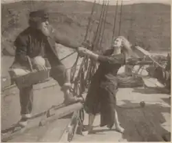 As described in various film magazine reviews,[4][5][6][7] Sally (Minter) lives with her grandfather Captain Ward (Periolat) on an old, beached schooner. Her mother died giving birth to her, without revealing the father, and her grandfather has vowed revenge on the man that he believes despoiled his daughter. In the meantime, he keeps his granddaughter isolated on the schooner, fulfilling all of the roles of the ship's "crew."