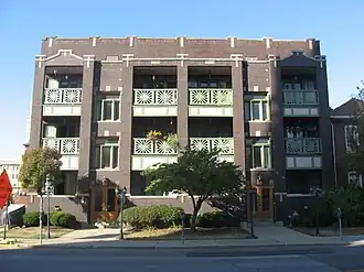 The Mayleeno is a historic apartment building located immediately behind the Athenæum (Das Deutsche Haus) at Indianapolis, Indiana. It was built in 1914, and is a three-story, U-shaped, brick and limestone building reminiscent of the Arts and Crafts movement. It features screened balcony porches on the front of each apartment unit.[2]: Part 2, p. 36–37