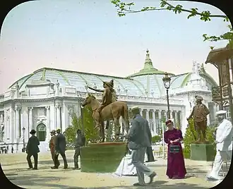 The Medicine Man, cast in 1899, was exhibited at the 1899 Paris Salon, where it was placed away from other sculptures against a "background of greenery," which was meant to confer honor.[2] The statue was praised by international critics, and was a favorite among visitors.[2] A year later, it won a silver medal at the 1900 Paris Exposition Universelle.[3] The Austrian government sought to purchase the statue,[2] but it was ultimately purchased by the Association for Public Art (formerly the Fairmount Park Art Association) in Philadelphia, Pennsylvania, for $6,000.[2] Dallin himself selected the site for the sculpture in East Fairmount Park.[4]