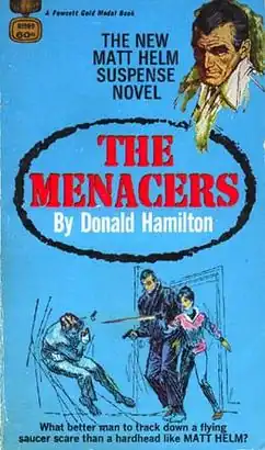 The Menacers, first published in 1968, was the eleventh novel in the Matt Helm spy series by Donald Hamilton and the first published since the launch of the Matt Helm film series starring Dean Martin.