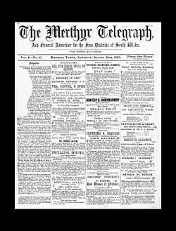 The Merthyr Telegraph and General Advertiser for the Iron Districts of South Wales (established in 1855 by Peter Williams) was a weekly publication distributed in the iron-producing areas of South Wales. It contained mainly local news and information.[1]