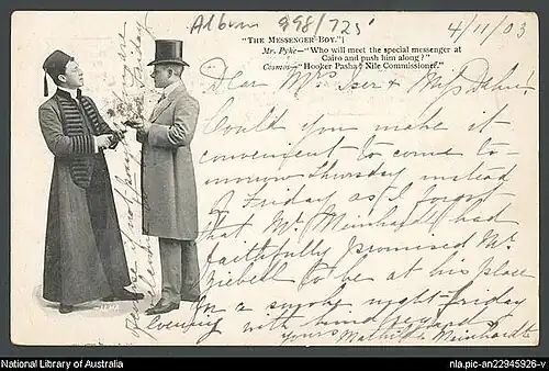 The Messenger Boy is a musical comedy in two acts by James T. Tanner and Alfred Murray, lyrics by Adrian Ross and Percy Greenbank, with music by Ivan Caryll and Lionel Monckton, with additional numbers by Paul Rubens. The story concerns a rascally financier who tries to discredit a rival in love; it takes place in London, Cairo and Paris.