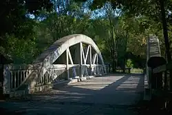 Today, a small remnant of the pre-1930s Middle Road can be found spanning the Etobicoke Creek at the Mississauga and Etobicoke border. A bowstring bridge, constructed in 1909, carried the Middle Road until 1932 and served as a farm lane until the section of the Queen Elizabeth Way into Toronto opened in 1940.[10][11] It was the first concrete truss bridge built in Canada. It was designed by Frank Barber and built by Octavius Hicks.[12] The short section is today named Sherway Drive.
