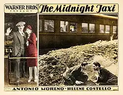 The Midnight Taxi is a 1928 American early sound part-talkie thriller picture from Warner Bros. directed by John G. Adolfi and starring Antonio Moreno, Helen Costello, and Myrna Loy. In addition to sequences with audible dialogue or talking sequences, the film features a synchronized musical score and sound effects along with English intertitles. The soundtrack was recorded using the Vitaphone sound-on-disc system.