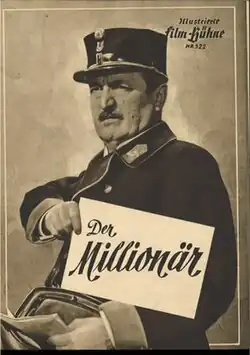 The Millionaire (German: Der Millionär or Geld ins Haus) is a 1947 German comedy film directed by Robert A. Stemmle and starring Hans Moser, Annie Rosar and Hans Holt.[1] It was made by the Munich-based Bavaria Film at the company's Bavaria Studios in the city. The film's sets were designed by the art director Hans Sohnle. The film was shot during the final stages of the Second World War, but wasn't released until 1947.