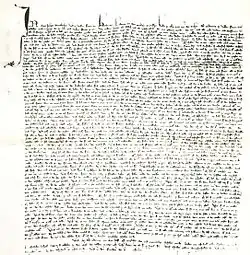 The oldest known manuscript of The Monastery of Love is contained in Cod. Donaueschingen 104. The codex was created around 1433 and is written in Alemannic dialect. The manuscript probably came from Konstanz.[3] The manuscript originally had 269 pages,[4] and The Monastery of Love has a length of 1890 verses. Of all three surviving manuscripts, it is the oldest and most reliable version, which is also the best preserved. The Minnerede has no heading in the Donaueschingen manuscript. The Cod. Donaueschingen 104 is now kept in the Baden State Library.