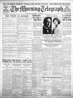 ![]() Front page of the Morning Telegraph for February 15, 1922. | |