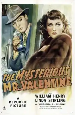 The Mysterious Mr. Valentine is a 1946 American film noir crime film directed by Philip Ford starring William Henry, Linda Stirling and Virginia Christine.[1]