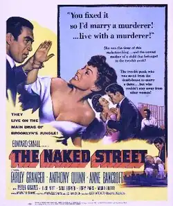 The Naked Street is a 1955 American crime film noir directed by Maxwell Shane. The drama features Farley Granger, Anthony Quinn and Anne Bancroft in a story about an enforcer who tries to control his sister's life by falsely clearing her boyfriend of murder.[1]