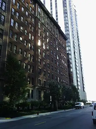 The Neuville is a historic apartment building located at 232 E. Walton Place in the Streeterville neighborhood of Chicago, Illinois. The eleven-story building was built in 1920, making it one of the first luxury apartment buildings in Streeterville. Architect John Reed Fugard of Fugard & Knapp, a firm which went on to design many of Streeterville's apartments, designed the Renaissance Revival building. As was typical of high-rises of the era, the lower two and upper two floors are the most ornate, with limestone facing on the lower two and projecting piers on the upper two; in contrast, the central floors are faced with plain red brick. An elaborate cornice runs along the roof on the front facade, while a plainer cornice above the second floor and a belt course above the ninth separate the building's sections. Like most luxury apartment buildings of the period, the building features a heavily ornamented entrance, a large lobby, and spacious ten-room apartments.[2]