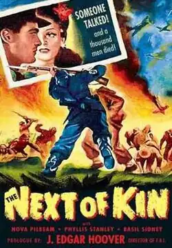 The Next of Kin, also known as Next of Kin, is a 1942 Second World War propaganda film produced by Ealing Studios.[3] The film was originally commissioned by the British War Office as a training film to promote the government message that "Careless talk costs lives". After being taken on by Ealing Studios, the project was expanded and given a successful commercial release.[4] After the war and up until at least the mid 1960s, services in British Commonwealth countries continued to use The Next of Kin as part of security training. The film's title is derived from the phrase "the next of kin have been informed" as used by radio announcers when reporting on the loss of personnel in action.[5]