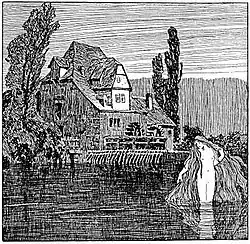 ![]() An illustration of the Nixie waiting in the mill pond by Otto Ubbelohde | |