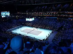 The O2 Arena (referred to as the North Greenwich Arena for the 2012 Summer Olympics and Paralympics) is a 20,000 capacity venue, primarily used for live music. It is located at the centre of The O2 and was the first new purpose built music venue in London since the Royal Albert Hall in 1871.[43] It is the second largest arena in the UK after the Manchester Arena, but is the busiest music venue in the world.[44]