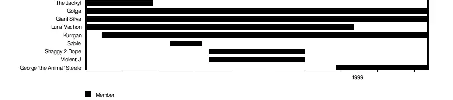 | Members | The Jackyl Kurrgan Giant Silva Golga Violent J Shaggy 2 Dope Luna Vachon Sable George Steele |