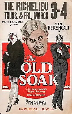The Old Soak is a 1926 American silent comedy crime film directed by Edward Sloman. The film stars Jean Hersholt, George J. Lewis, and June Marlowe, and is based on a 1922 Broadway play of the same title by Don Marquis.[1] The play was later adapted into the 1937 release The Good Old Soak starring Wallace Beery.[2]