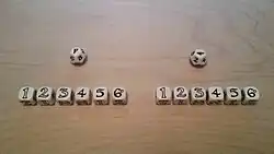 The One Ring Roleplaying Game uses a special set of dice: the twelve-sided Feat die, which is marked with numbers 1–10, as well as two special symbols, Gandalf's rune and the Eye of Sauron, and a six-sided Success die, which is numbered 1–6, with a Tengwar rune on the 6. A regular d12 and d6 can be substituted.
