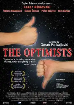 The Optimists (Serbian Cyrillic: Оптимисти) is a 2006 Serbian black comedy film directed by Goran Paskaljević. The film, presented as five unrelated narrative sequences, was inspired by Voltaire's 1759 satirical novel Candide.[1][2] The Optimists features an ensemble cast of Serbian actors with Lazar Ristovski appearing in all five stories.