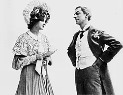 Frank Smithson directed the Broadway production, which opened at the Herald Square Theatre on 8 April 1907. It ran for 178 performances, during which time the production transferred to the Casino Theatre. It closed there on 14 September 1907. It then went on a lengthy and successful tour of the United States. It was produced by brothers Lee and Sam S. Shubert and choreographed by William Rock.[3] The production used a revised book by Joseph W. Herbert; the character of Meakin in particular was highly altered for the actor Eddie Foy, including changing the name to "Artie Choke". Herbert also created a new part for himself, the boxer and wrestler Toby Blockett. Only 12 of the musical numbers created by Caryll and Mockton were used, and the production interpolated several songs by American songwriters, including Jerome Kern, Hugo Frey, Seymour Furth and E. Ray Goetz, among others. The cast also included Trixie Friganza as Caroline, Amelia Stone as Lady Violet, Laura Guerite as Zelie, George C. Boniface, Jr. as Aubrey, Melville Ellis as Ronald, and Alfred Hickman as Guy.[3]
