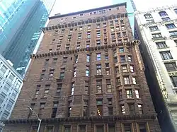 The Osborne's facade is clad largely with rusticated blocks of brownstone.[31][32][33] Architectural writers Sarah Landau and Carl Condit theorized that the material was meant to evoke the design of the brownstone row houses that were common across the city,[28] while architectural writer Robert A. M. Stern wrote that the use of brownstone may have instead been used to "convey a sense of the power of stone".[33] The namesake and developer, Thomas Osborne, expected that the facade could attract residents of middle-class brownstone row houses.[23] The superstructure is constructed of masonry bearing walls up to 4 feet (1.2 m) deep.[34]