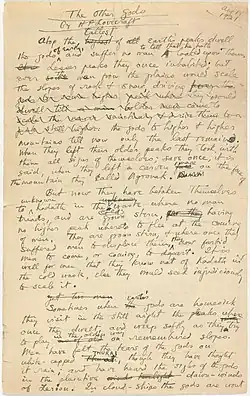 "The Other Gods" is a fantasy short story written by American author H. P. Lovecraft, on August 14, 1921.[1] It was first published in the November 1933 issue of The Fantasy Fan.[2]
