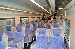 The train contains Red Premium and Red seated accommodation and a bar/lounge car, Café 828.[3]