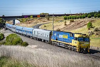![]() The Overland outside Geelong, travelling westwards to Adelaide, in 2023 | ||||||||||||||||||||||||||||||||||||||||||||||||||||||||||||||||||||||||||||||||||||||||||||