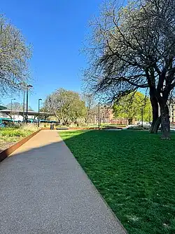 The Paddock is a historic public space[1] located in the town centre of Chatham, Kent.[2] Situated in and between Chatham Waterfront, Chatham Waterfront bus station and the Pentagon Shopping Centre,[3] it has served as an important green space for over a century.[4] Originally known as The Shrubbery, the area was later renamed The Paddock.[5] The space has undergone several transformations over the years,[6] evolving from a Edwardian park[7][2] to an urban plaza, reflecting the development of Chatham itself.