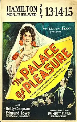The Palace of Pleasure is a lost 1926 American silent drama film directed by Emmett J. Flynn and written by Benjamin Glazer and Bradley King. The film stars Betty Compson, Edmund Lowe, Henry Kolker, Harvey Clark, Nina Romano, and Francis McDonald. The film was released on January 10, 1926, by Fox Film Corporation.[1][2][3]